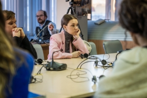 18 февраля в Санкт-Петербургской высшей школе перевода Герценовского университета (ВШП) состоялся День открытых дверей. Программа мероприятия была насыщенной: сначала потенциальных абитуриентов пригласили на экскурсию по ВШП, где им показали учебные аудитории, профессиональное переводческое оборудование, конференц-зал и комнату для отдыха. Впервые такая экскурсия была проведена самими слушателями, что позволило участникам взглянуть на школу глазами обучающихся. Также для гостей Дня открытых дверей было проведено открытое занятие по синхронному переводу. Занятие проводила практикующая переводчица и преподаватель ВШП Жанна Шуклина. Для тех, кто мечтает стать переводчиком, это уникальный шанс посмотреть, как проходит подготовка профессионалов в ВШП, которая славится успехами своих выпускников, способных удовлетворить запросы самых требовательных работодателей, таких, как МИД России, ООН и другие международные организации, СБЕР и др.