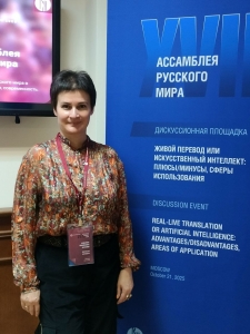 С 20 по 22 октября в Москве состоялась XVII Ассамблея Русского мира «Фундаментальный вклад русского мира в международное развитие: история, современность, будущее». Этот международный форум был призван развернуть дискуссию по вопросам сохранения ценностей, идеалов, базовых принципов Русского мира, продвижения русского языка и сбережения культурно-исторического наследия в современных условиях. В Ассамблее приняли участие представители 105 стран. Это заинтересованные в развитии гуманитарного сотрудничества с нашей страной преподаватели русского языка ведущих зарубежных университетов, исследователи русской литературы, лингвисты, переводчики, общественные деятели, дипломаты, представители сфер культуры, образования, СМИ, духовенства, молодёжных сообществ и др. Герценовский университет на этом мероприятии представляла директор Санкт-Петербургской высшей школы перевода Анжелика Антонова.